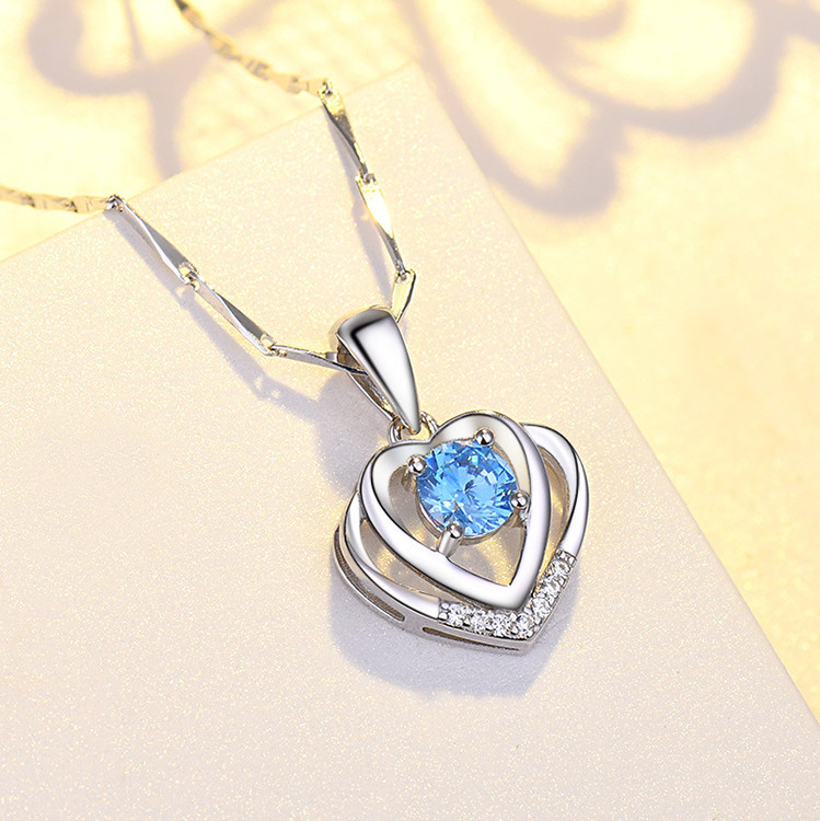 گردنبند نقره دوقلبی عیار: S925 رنگبندی نگین: آبی و سفید ❌نگین سفید ناموجود❌ مدلی شیک و خاص طرح جدید کره